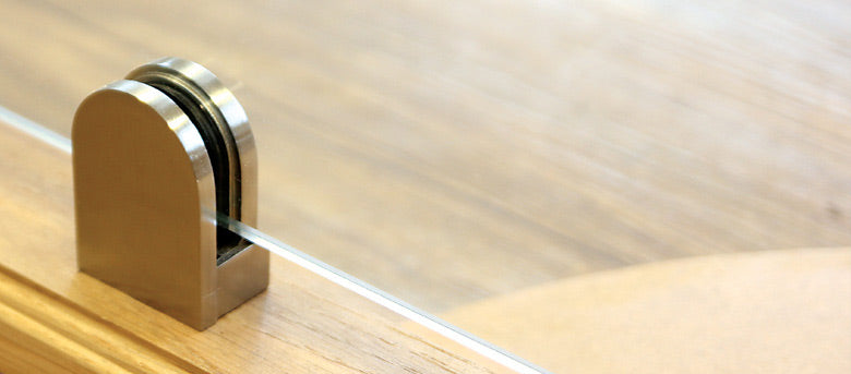 Clamped glass sits below and above the handrail and baserail by 22mm each, please refer to our measuring guide
